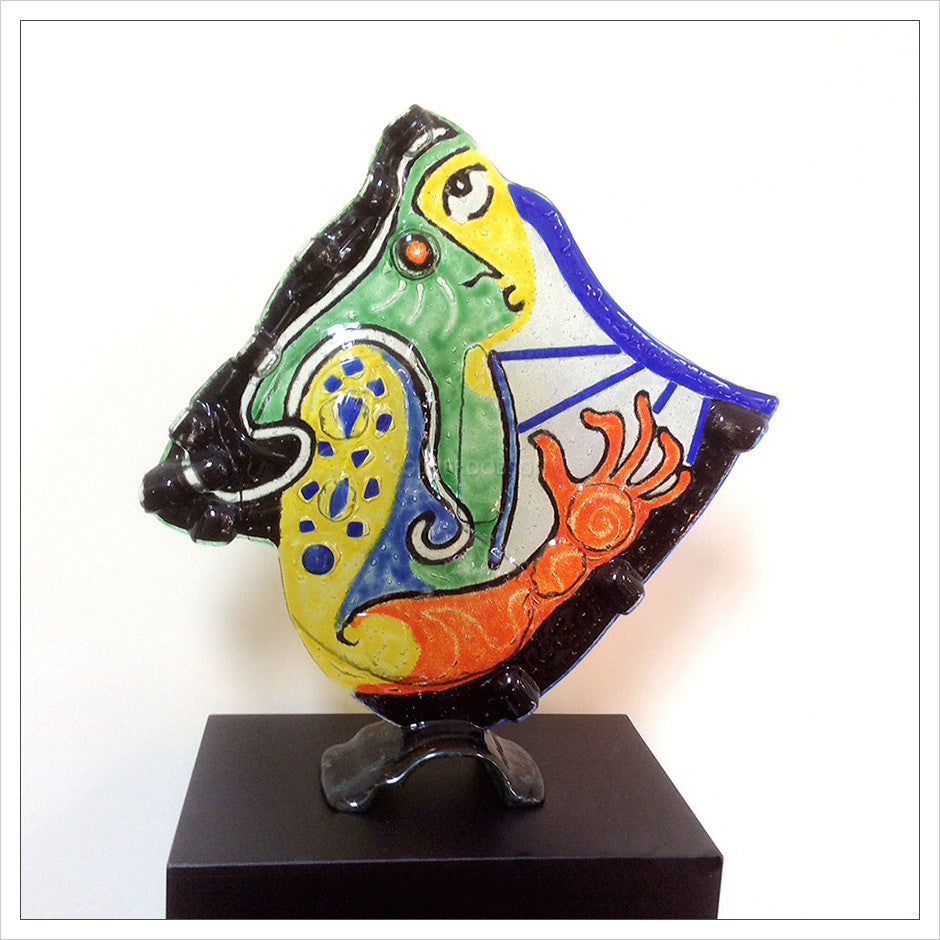 Silvio Vigliaturo is a contemporary Italian master who brings the scale and energy of sculpture and the bold instinct of a colorist to the delicate nature of glass making and painting. Vigliaturo's witty and vivid pieces are technically highly sophisticated and themes include elements of classical fables, satirical jokes, musical evocations and dream-like images.